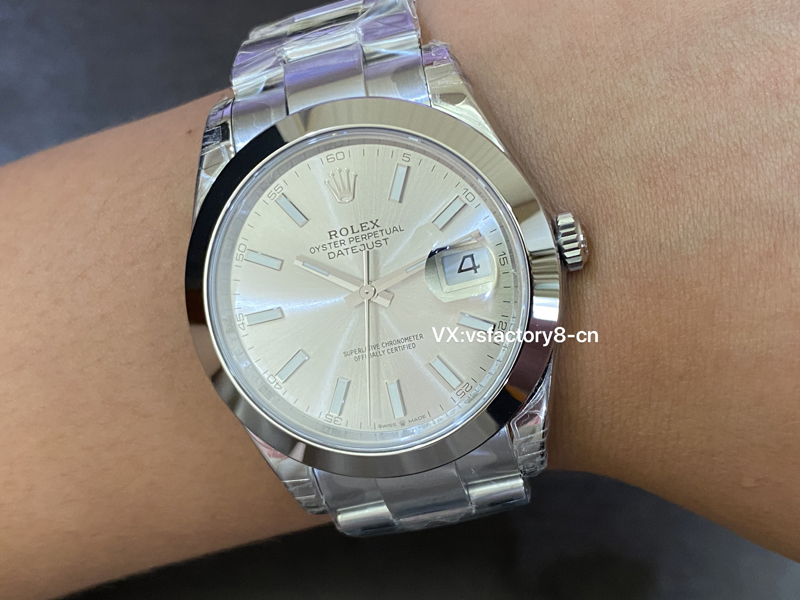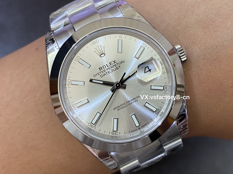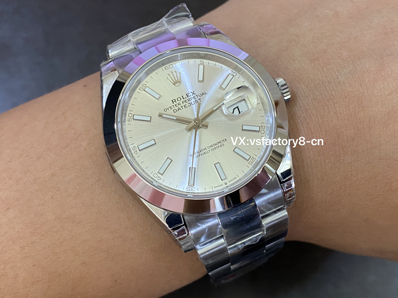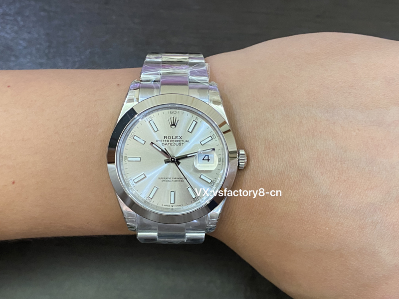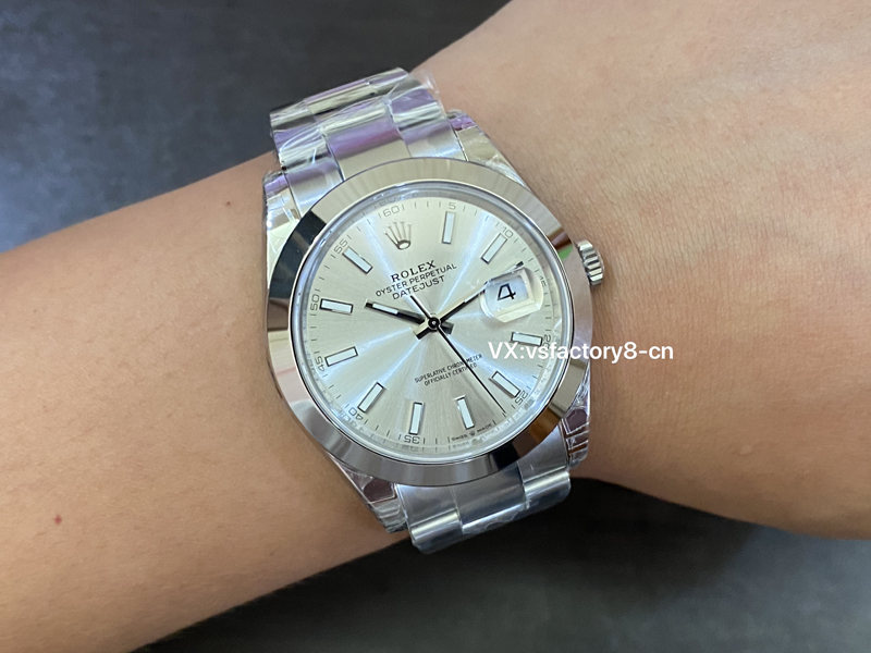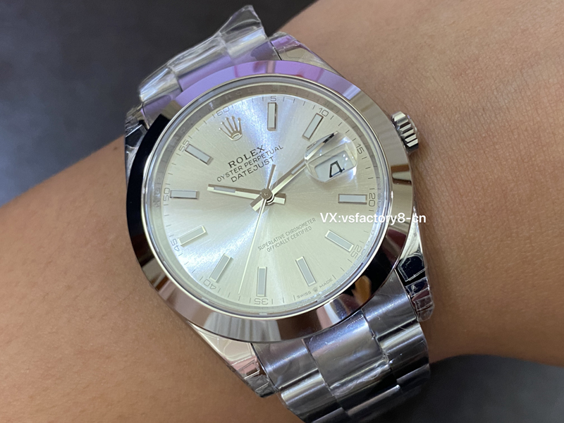 1:VS厂的这款劳力士41mm光圈银盘日志复刻表在外观上几乎完美地还原了正品的所有的细节,表壳采取了904L精钢材质锻造,具有良好的耐磨性和抗腐蚀性。表面经过精细打磨,展现出迷人的光泽感,每一个细节都得到了精细的打磨,从表壳到表链,甚至是每一个小的螺丝,都经过严格的质量检查,无论是光泽感还是手感,都非常逼近正品的水准。