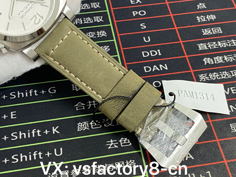 3:VS厂在沛纳海pam1314的表盘上真正达到了创新,同步了一致白色三明治式表盘极简清爽,其三点位置日历窗,九点位置小秒针盘,结构真正达到了还原,并且指针和刻度都细节做工处理一步到位,填充了瑞士夜光粉涂层,效果一致元,表盘英文字体也非常细节,从表盘各方面可以看出VS厂对沛纳海pam1314的做工细节非常精湛。