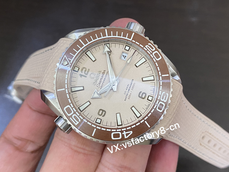 总结:VS厂欧米茄沙丘色海马600米复刻表,严格遵循了原版的复刻还原设计理念,无论是在外观上,还是在内部机芯的结构方面,均力求做到与正品尽可能一致,从外观设计、机芯细节还是制作工艺等方面,都充分体现了VS厂对产品质量的高度追求,VS厂欧米茄沙丘色海马600米复刻表绝对是一个非常值得入手的选择。