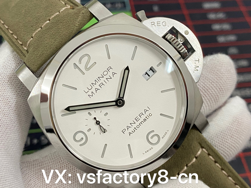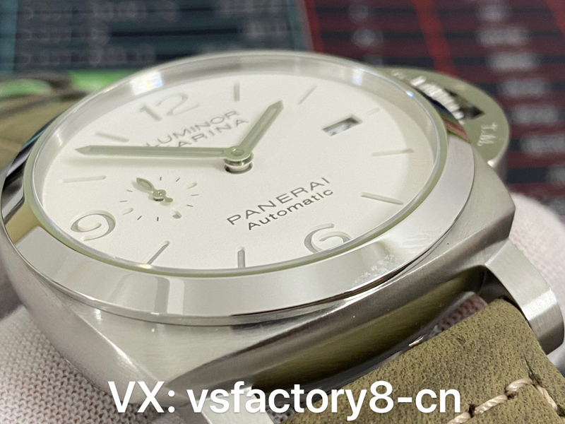 VS厂沛纳海pam1314复刻表的盘面还原也是值得入手的原因之一,采取了原版一致磨砂白盘面还原,质感上如同正版一致,既不会一眼假和破绽,三点则复刻还原日历窗以及九点小秒针盘“三明治”结构,VS厂复刻还原非常励志,指针上经过镀铑工艺,呈现出原版一致工艺,盘面6,9,12采取了阿拉伯数字刻度,表盘上英文字体印刷非常细腻,并在字面和数字的大小、位置等方面进行了仔细的对比,力求做到一模一样,指针和刻度均填充瑞士夜光粉涂层,做到了原汁原味,也是非常值得入手。